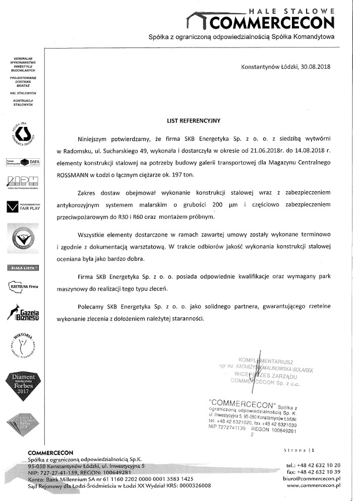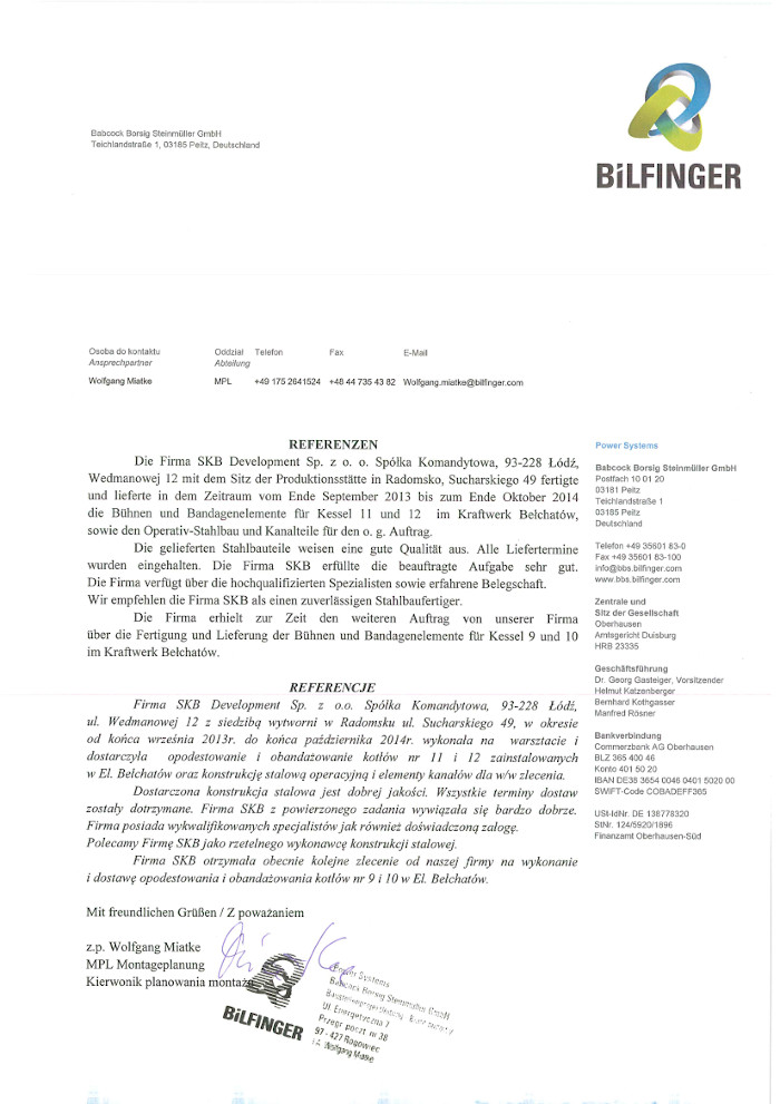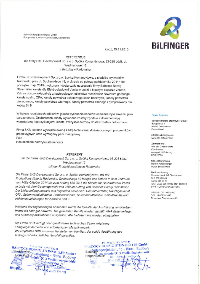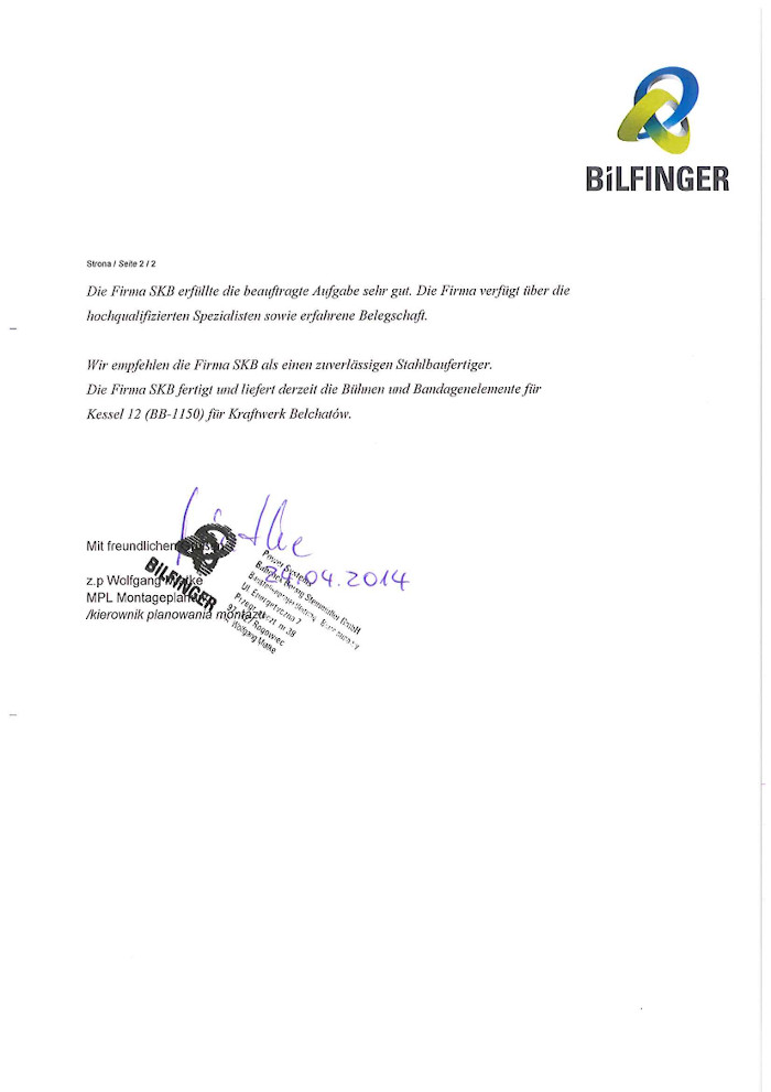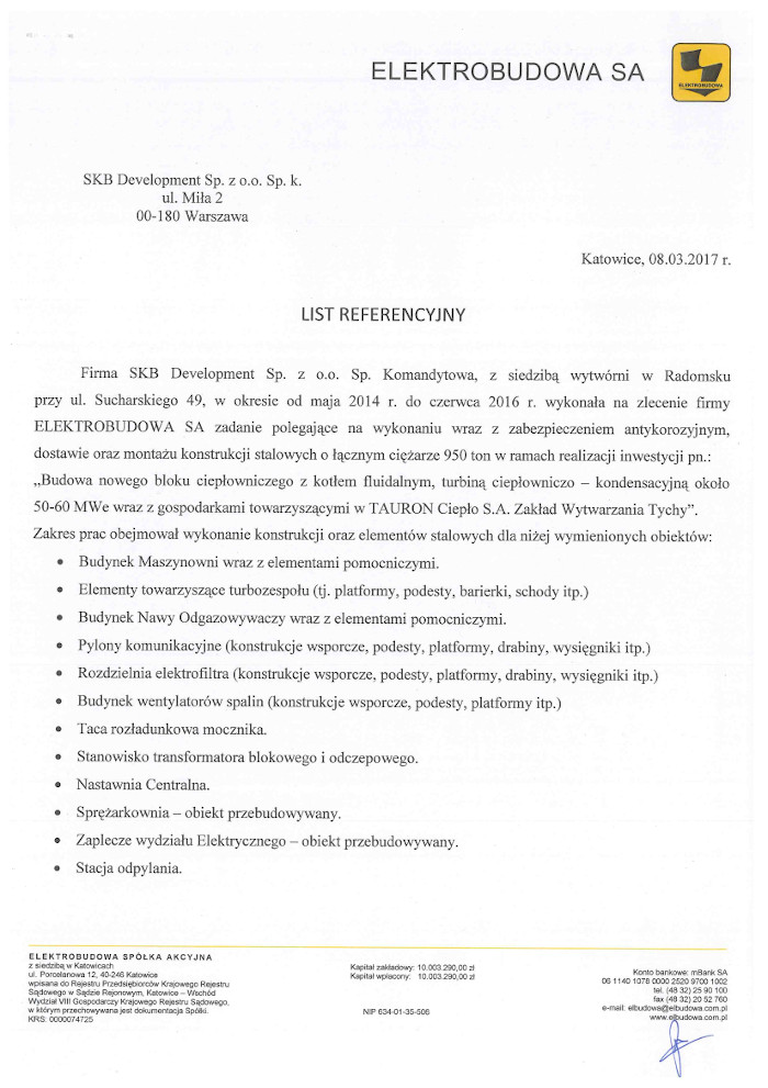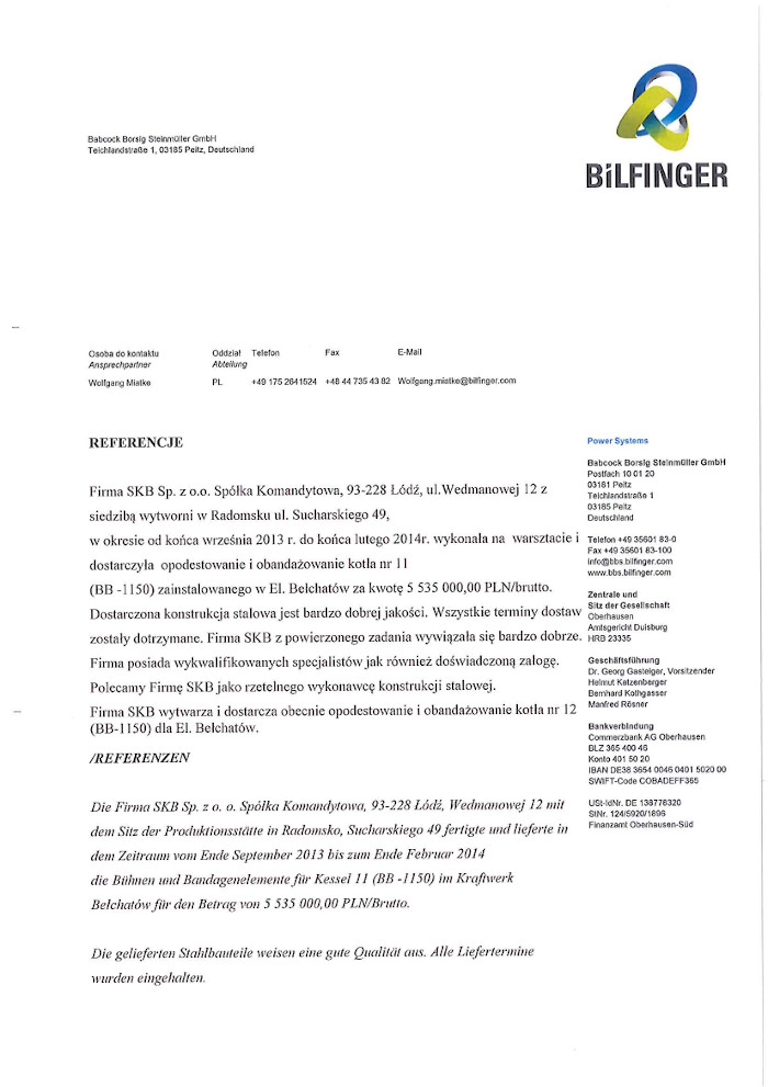 The SKB Energetyka company, part of the SKB group, specialises in the implementation of investments in the broadly understood steel structures and energy industries.