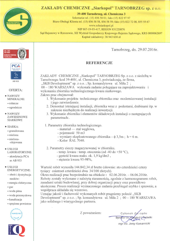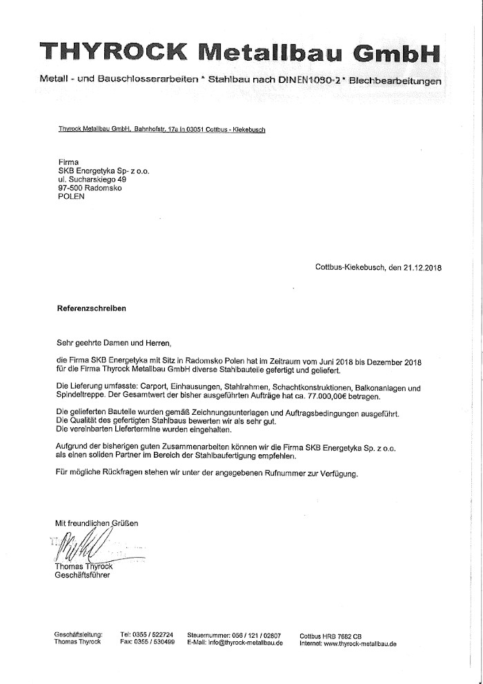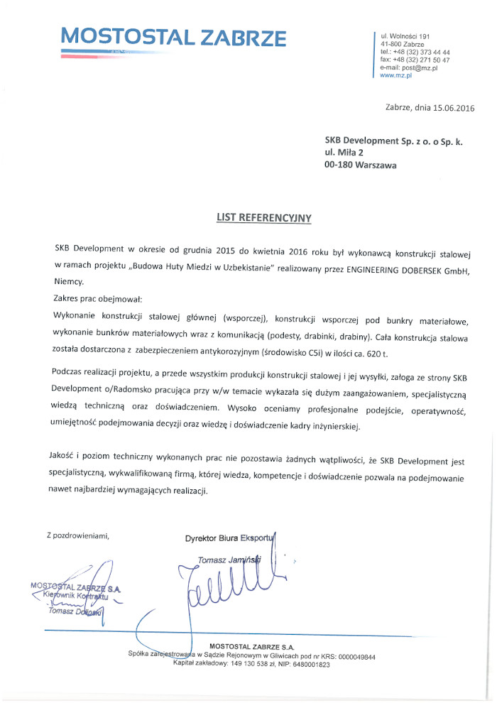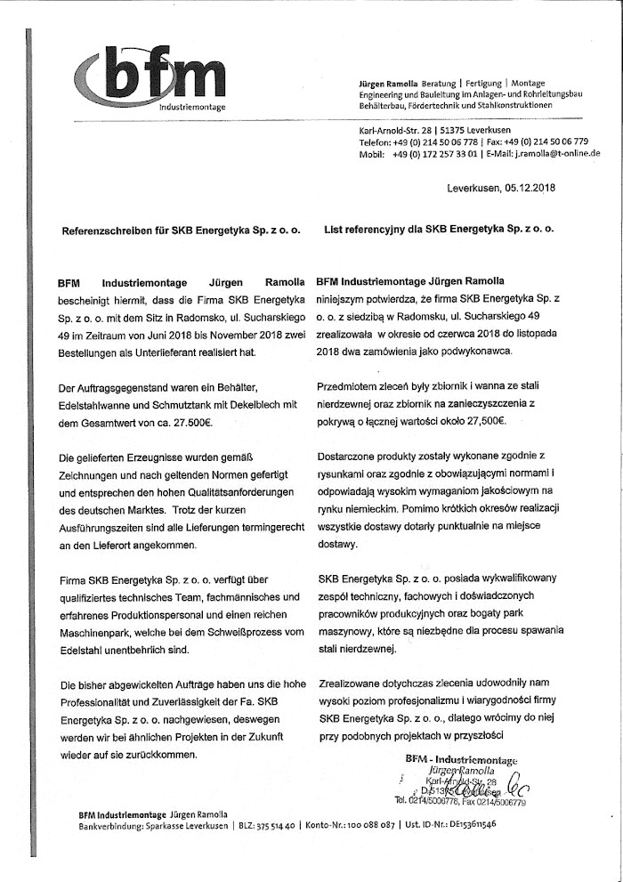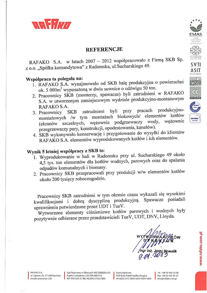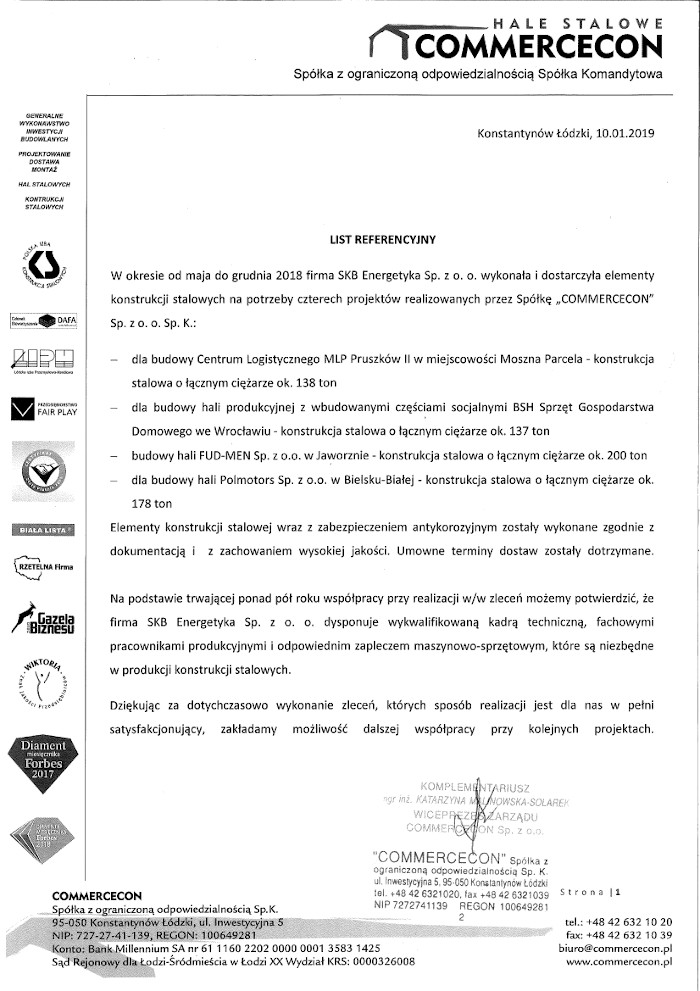 The SKB Energetyka company, part of the SKB group, specialises in the implementation of investments in the broadly understood steel structures and energy industries.
